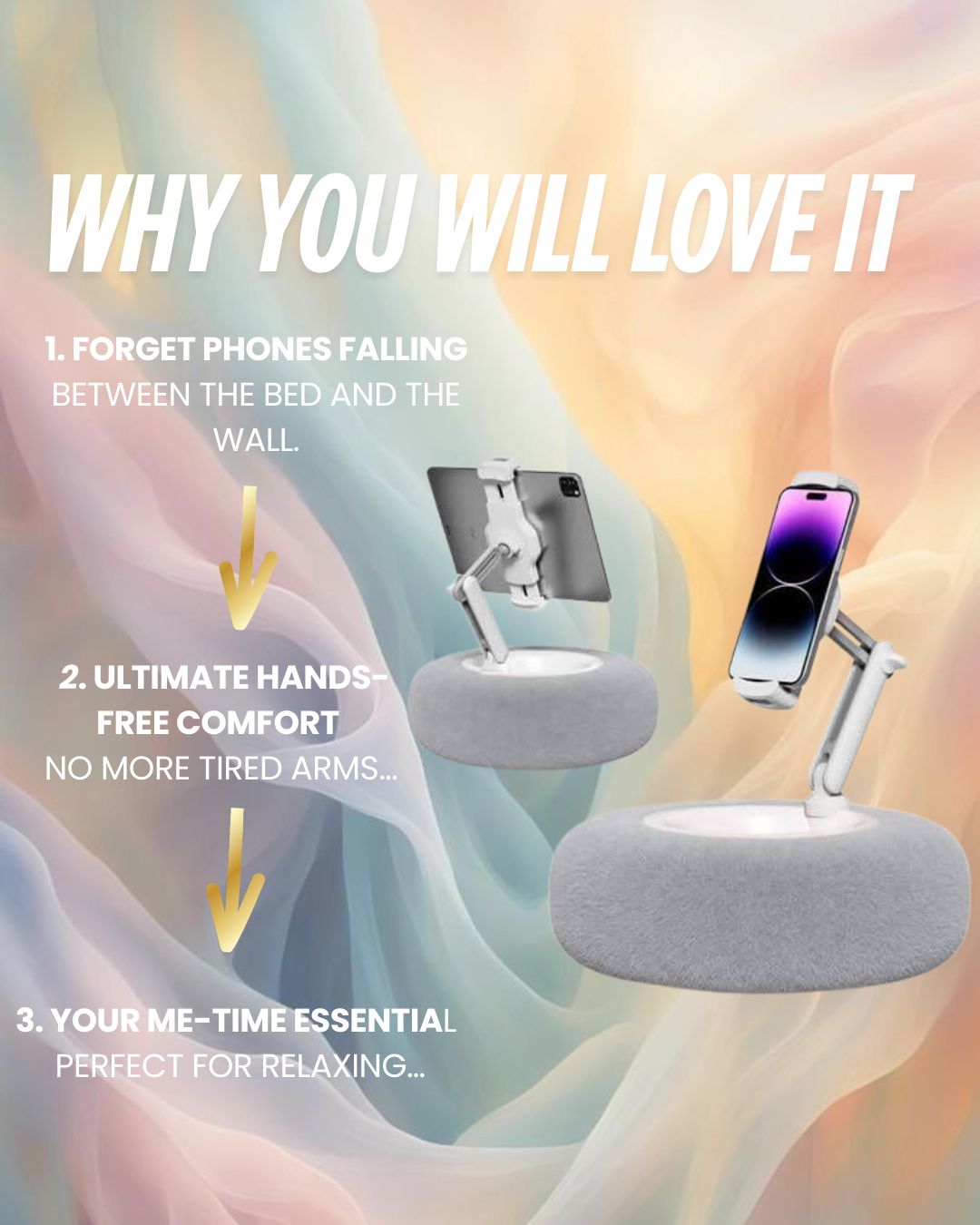 The soft pillow base forms to your body so you can watch your phone/tablet hands-free even while lying down.